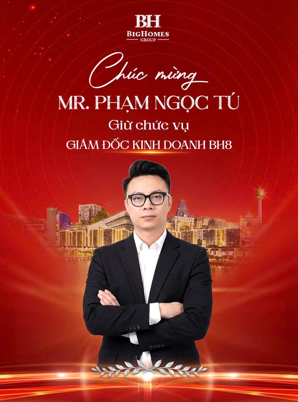 BigHomes Group trân trọng chúc mừng Mr. Phạm Ngọc Tú chính thức đảm nhận vai trò Giám đốc Kinh doanh BH8 – Ghi dấu bước tiến mạnh mẽ trên hành trình chinh phục những đỉnh cao mới.